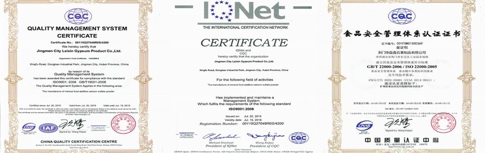 荊門市磊鑫石膏製品有限公司は石膏製品の研究、生産と販売を一體にして、一流の技術(shù)的な企業(yè)である。工場(chǎng)は荊門市東寶工業(yè)園に位置して、面積も25000平方メートルになります。當(dāng)社は磊鑫、杰普生、凱氏蘇特という三つの商標(biāo)をもって、特許も二つがある。主な製品は醫(yī)薬品グレード製品、食品グレード製品、農(nóng)業(yè)グレード製品と建築材料などがある。経済的な価格と最高の品質(zhì)で、當(dāng)社は優(yōu)秀な製造商として、世界中に多くの有名な企業(yè)と協(xié)力しています。インポートとエクスポートの権利を持って、當(dāng)社の製品は韓國(guó)、日本、ロシア、ヨーロッパなどのマーケットにもよく販売されています。お客様に対して、神様のように正直します、お品質(zhì)に対して、命のように頑張ります。當(dāng)社と協(xié)力することはあなたの正しい選択で、共に進(jìn)むことはわたしたちの同じ目標(biāo)である。今後ともご指導(dǎo)ご支援を賜りますよう、どうぞよろしくお願(yuàn)い申し上げます。                  ――中國(guó)最高の石膏(硫酸カルシウム)製造商になる                             ――CGC·磊鑫石膏